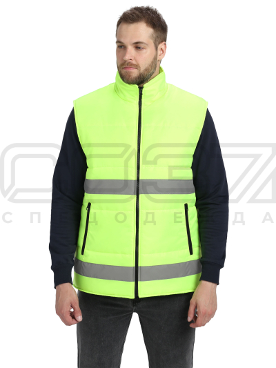 Жилет сигнальный утеплённый "Квазар" с СОП цв.лимонный тк.оксфорд в Нижнем Новгороде