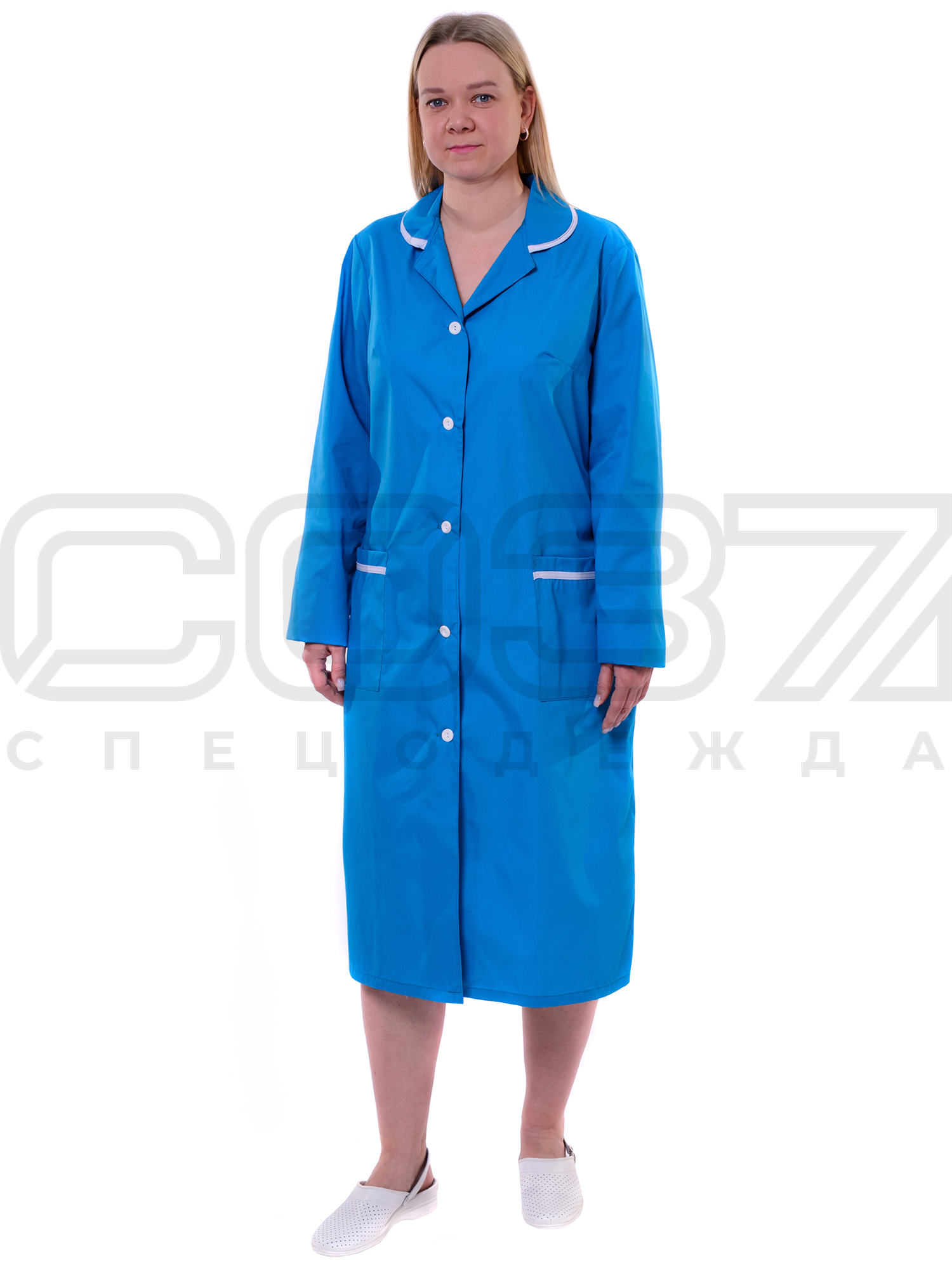 Халат рабочий женский цв.бирюза/белый кант тк.тиси в Нижнем Новгороде