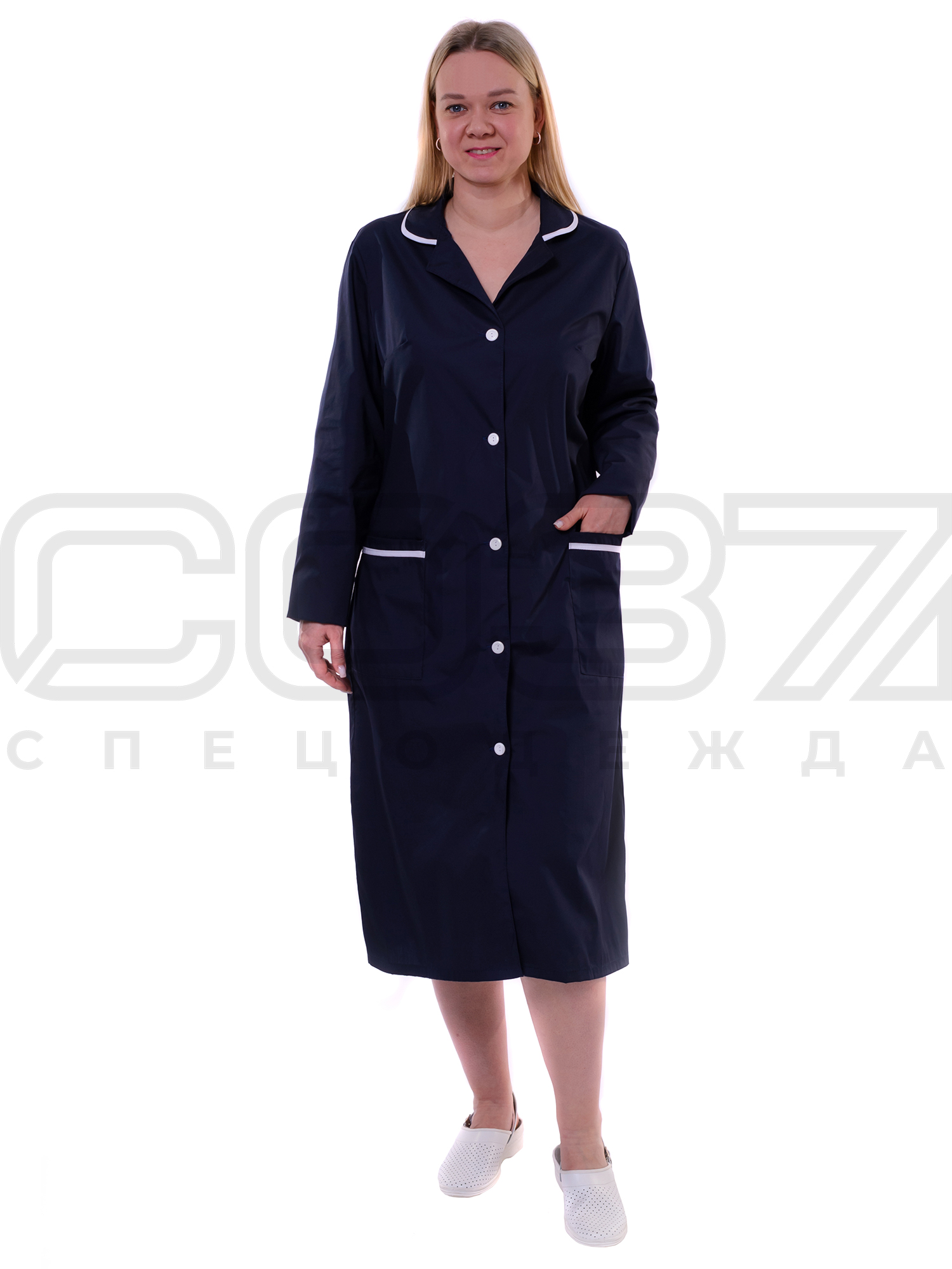 Халат рабочий женский цв.тёмно-синий/белый кант тк.тиси в Нижнем Новгороде