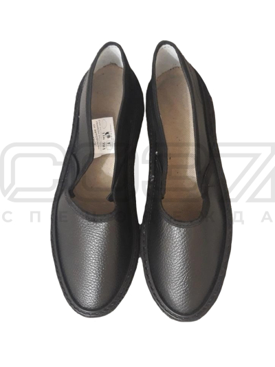 Тапочки нат.кожа без перфорации подошва пористая резина цв.чёрный в Нижнем Новгороде