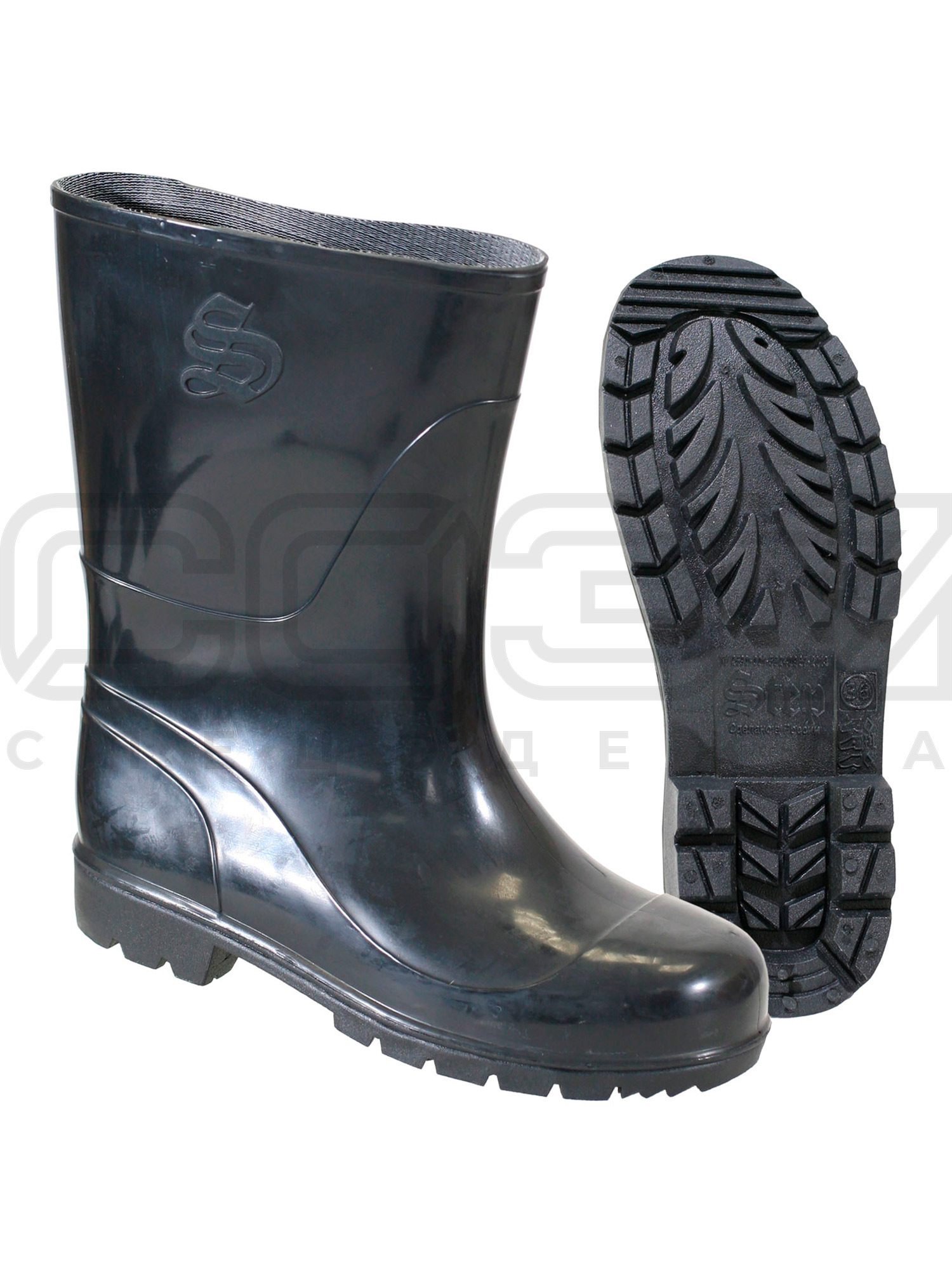 - Верх сапог и подошва изготовлены из ПВХ-материала, который обеспечивает защиту от влаги, грязи и общепроизводственных загрязнений.