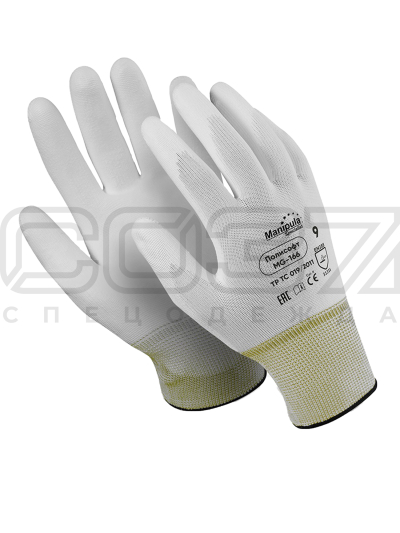 Перчатки нейлоновые белые двойной оверлок 13 класс вязки полиуретан на ладони и пальцах в Нижнем Новгороде